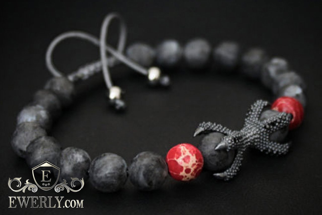 Кам'яний браслет чорний з червоним для чоловіка 123032KQ
